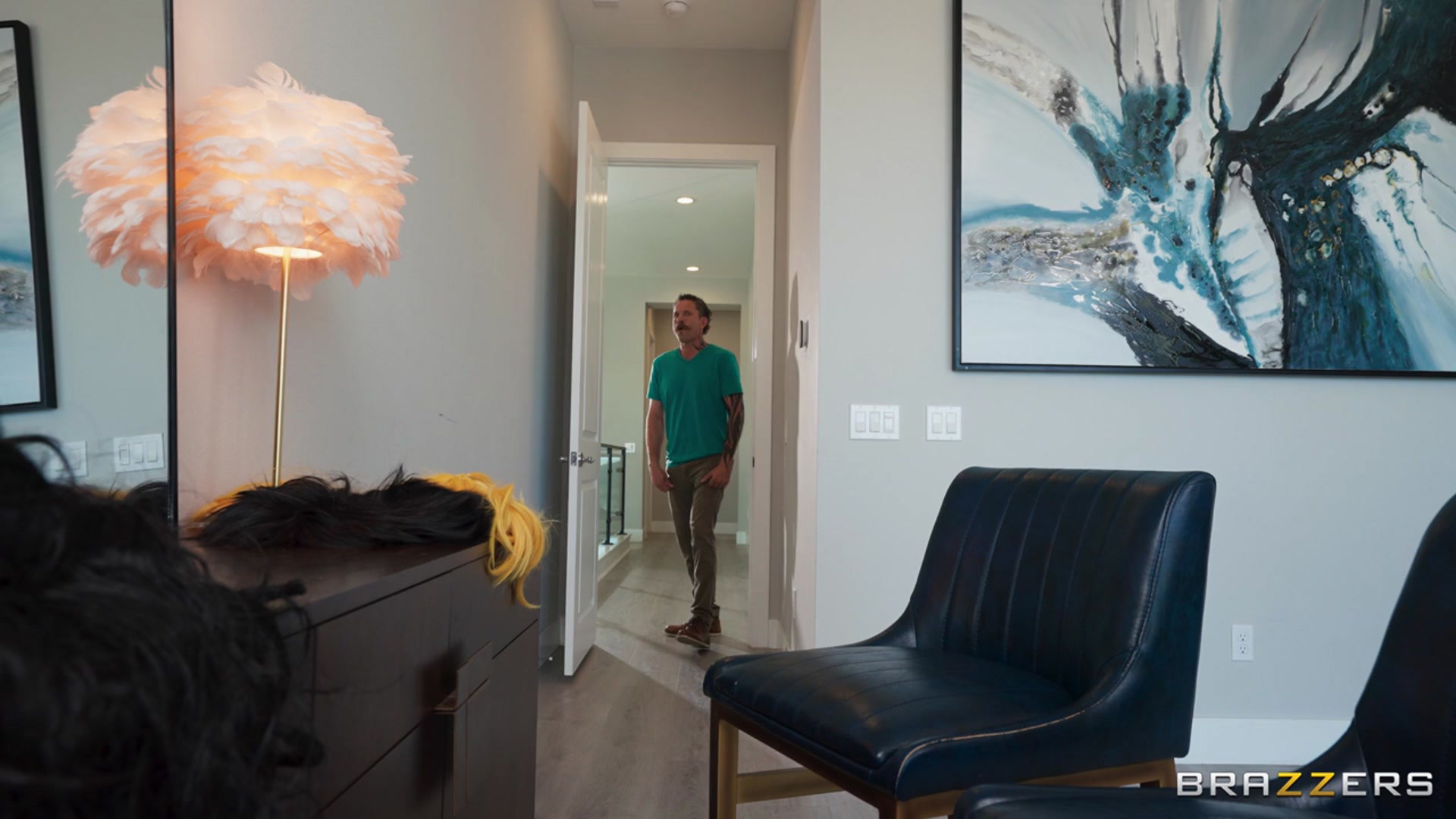 by BrazzersConnie Perignon, busty tattooed brunette in yellow top and pink skirt, and petite Asian Kimmy Kimm in blue bikini top start teasing with wig…